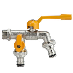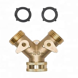 Divisor de manguera de 2 vías de latón, espiga de agua, válvula de cierre de manguera de jardín de 90 grados